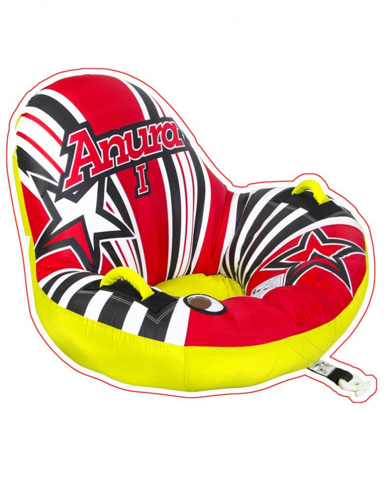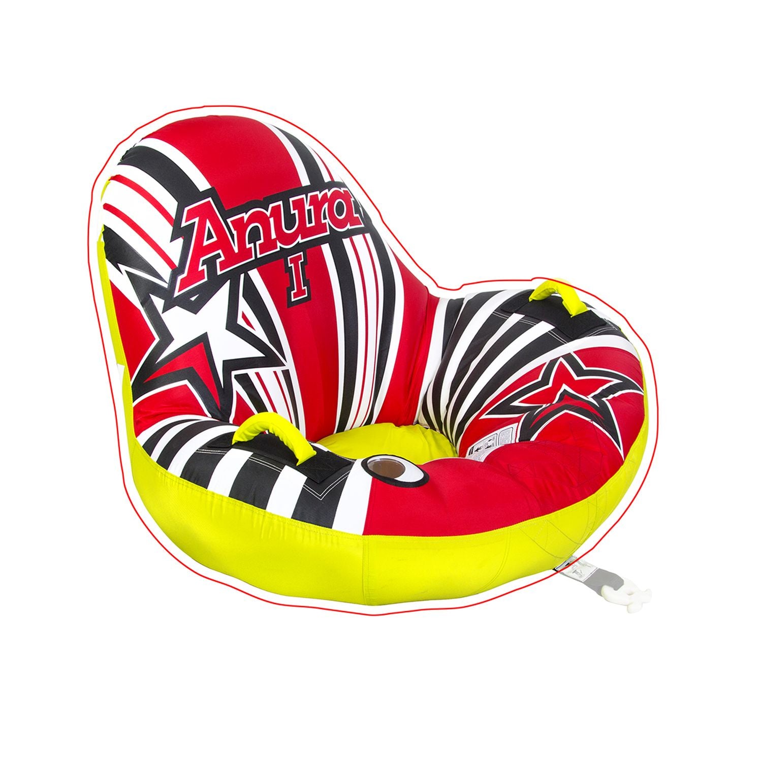 • Hüpfen Sie wie ein Frosch auf diesem Single-Personen-Anhänger umher. PS: Dieser Towable ist auch ein hübscher Thron. Sie haben die Wahl: eine holprige Fahrt hinter dem Boot oder eine entspannte Session auf Ihrem Thron.
