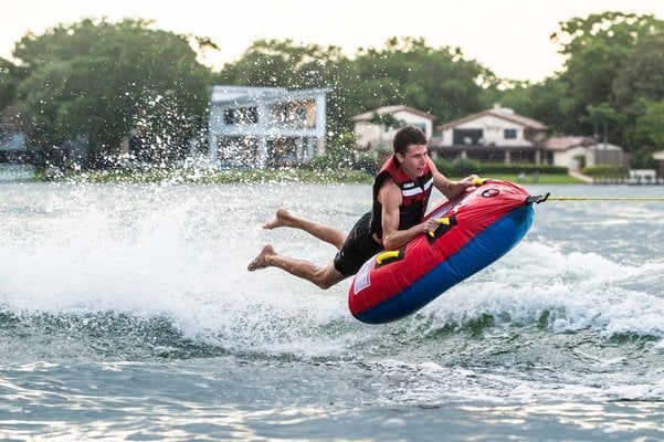 • Heißes Gefühl? Diese Brise kann einen glücklichen Fahrer im Handumdrehen abkühlen! Der Breeze ist vollständig mit doppelt genähtem Nylon über robusten PVC-Blasen bezogen. Ein praktischer Schnellseilverbinder ermöglicht ein einfaches Anschließen und Lösen des Seils. Sie werden den Komfort der 4 Griffe mit bequemem Neopren-Knöchelschutz und die Festigkeit des Einweg-Boston-Ventils zu schätzen wissen.