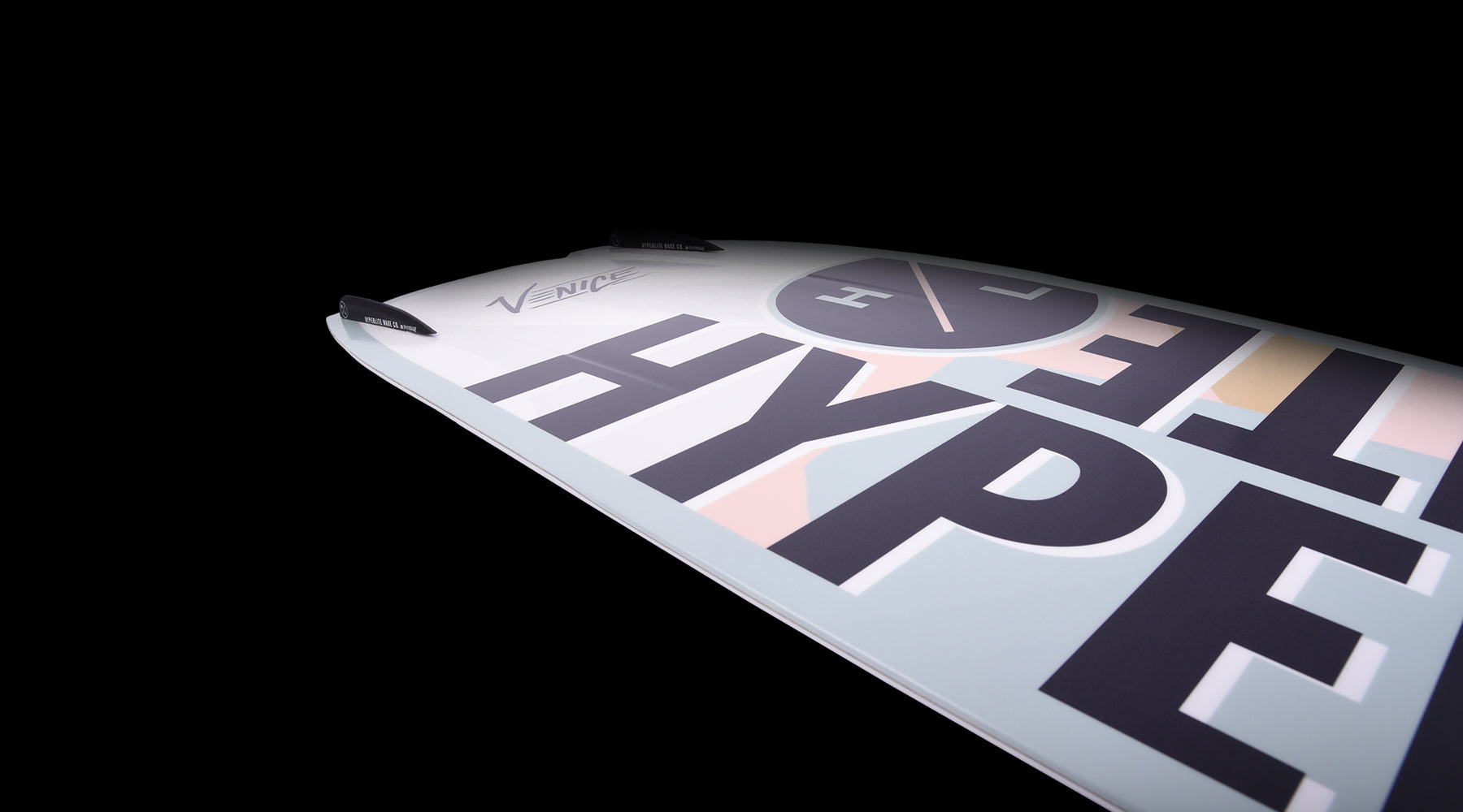 Shaun Murray and Greg Nelson agree that a solid foundation greatly increases a rider’s learning curve. Hyperlite’s Venice is shaped specifically for creating that base and solid foundation. The Venice has a wider overall profile built atop a Continuous Rocker, delivering a smooth carving board that gets more pop off the wake due to its increased surface area. The Variable Edge Design is forgiving between the inserts but then sharpens towards the tip and tail to provide the strong edge hold necessary for generating speed into the wake. The Baseline is simple and both Murray and Nelson believe that “Less is More” in their shared shaping philosophy. The center of the base is clean, clean water flow creates a smooth ride and softer landings, the dual tunnels easily allow water to enter and exit at the Venice’s tip and tail.  Take it from two legends, the Venice is the board for your wakeboard adventure.