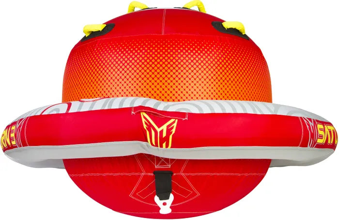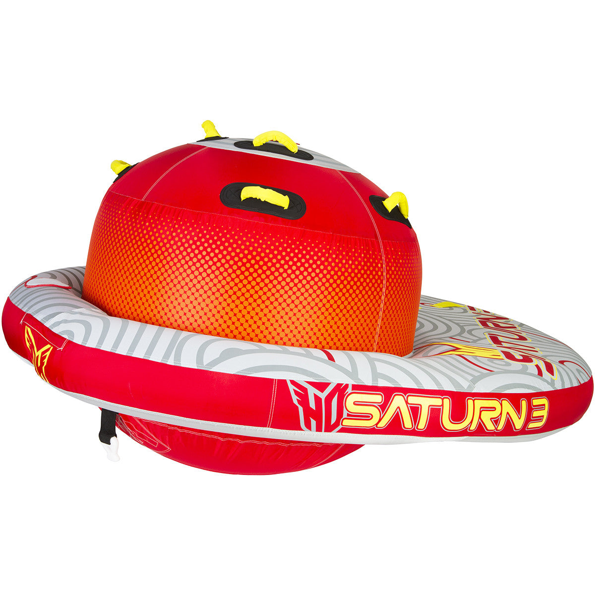 The Saturn is like no other tube out there. Utilizing HO Sports' patented Sphere Technology, the Saturn delivers a unique ride by utilizing a single sphere surrounded by an asymmetric, oversized deck. Riders kneel on the Softshell deck and adjust their body position to keep the tube upright in a turn. Never before has tubing been so interactive. Add some more fun to the equation by riding with a friend or two. You'll need to work together to keep the Saturn from tipping over in a turn. The Saturn is out of this world!